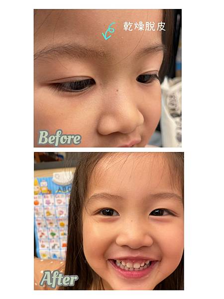 晞晞有一陣子眉毛一直脫皮,我就勤著用面霜幫晞晞塗抹,大概2週的時間,脫皮的狀況就有很明顯的改善,護益膚面霜的保濕效果真的非常好,很適合小朋友們的嬌嫩肌膚使用。